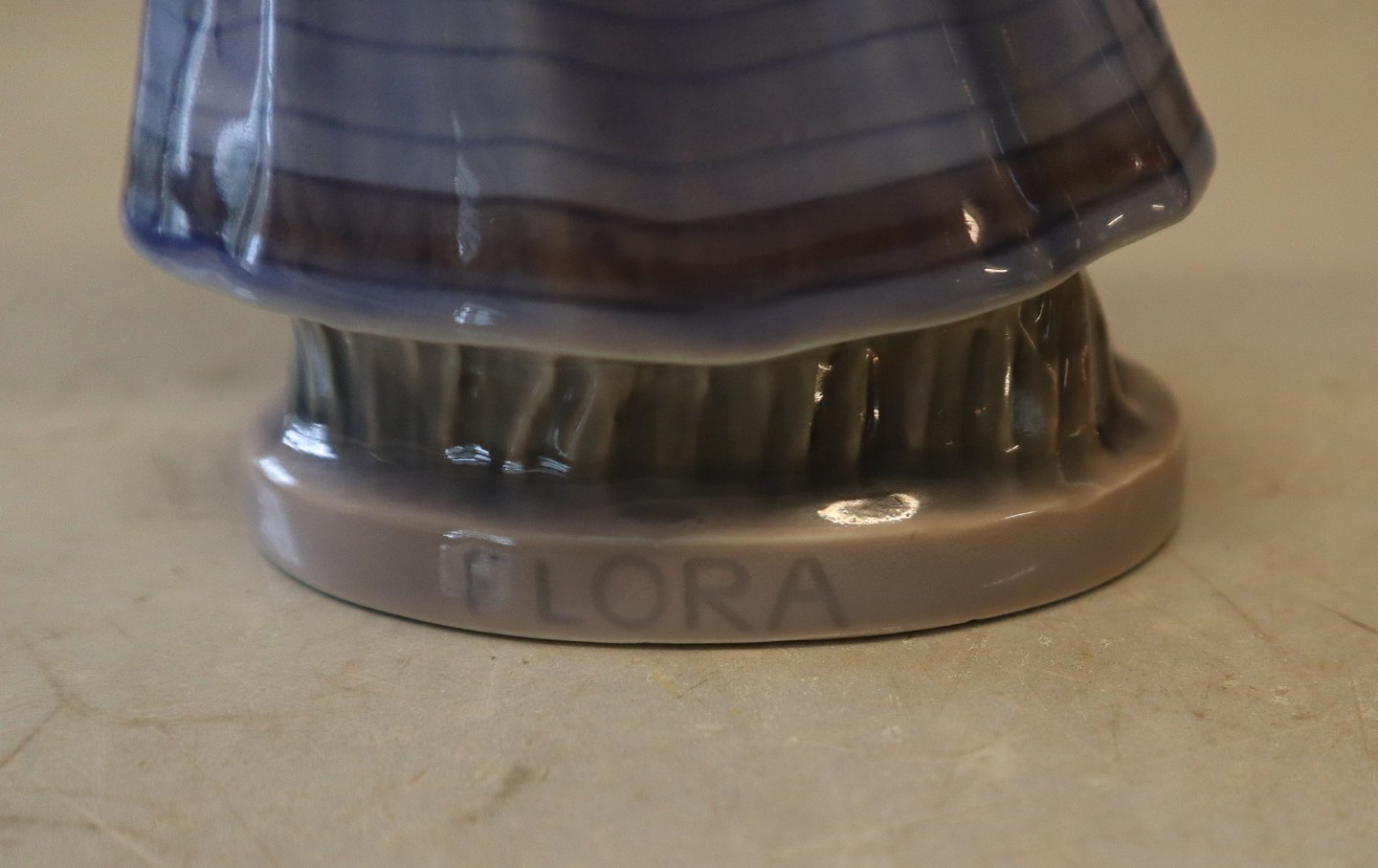 Description: Dahl Jensen 1309 Flora 25.5 cm (DJ) Girl with flowers Marked with the Royal Crown and DJ Copenhagen. In nice and mint condition Dahl Jensen Worked first for Bing & Groendahl B&G from 1897