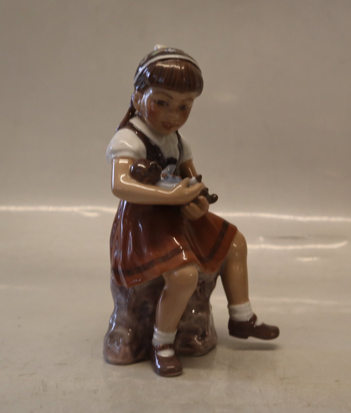 Dahl Jensen 1295 Lille pige "Bente" 14,5 cm (DJ). Mærket med kongelig krone og DJ Copenhagen i hel og fin stand. 1. sort
