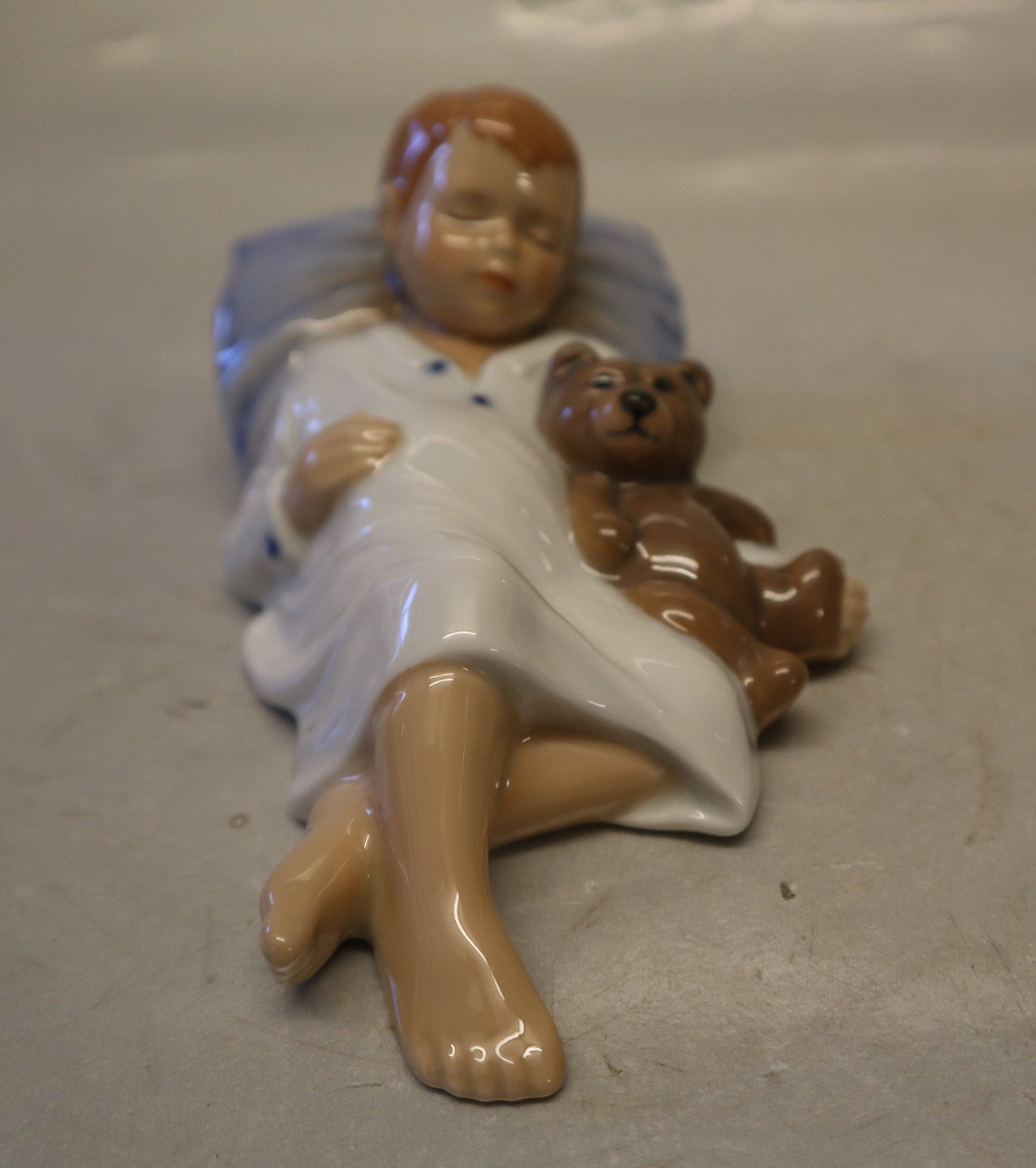 Description: Royal Copenhagen 0681 RC Jens sleeping, Boy sleeping with teddy, 6 x 11 cm (1021681) Allan Therkelsen In mint and nice condition