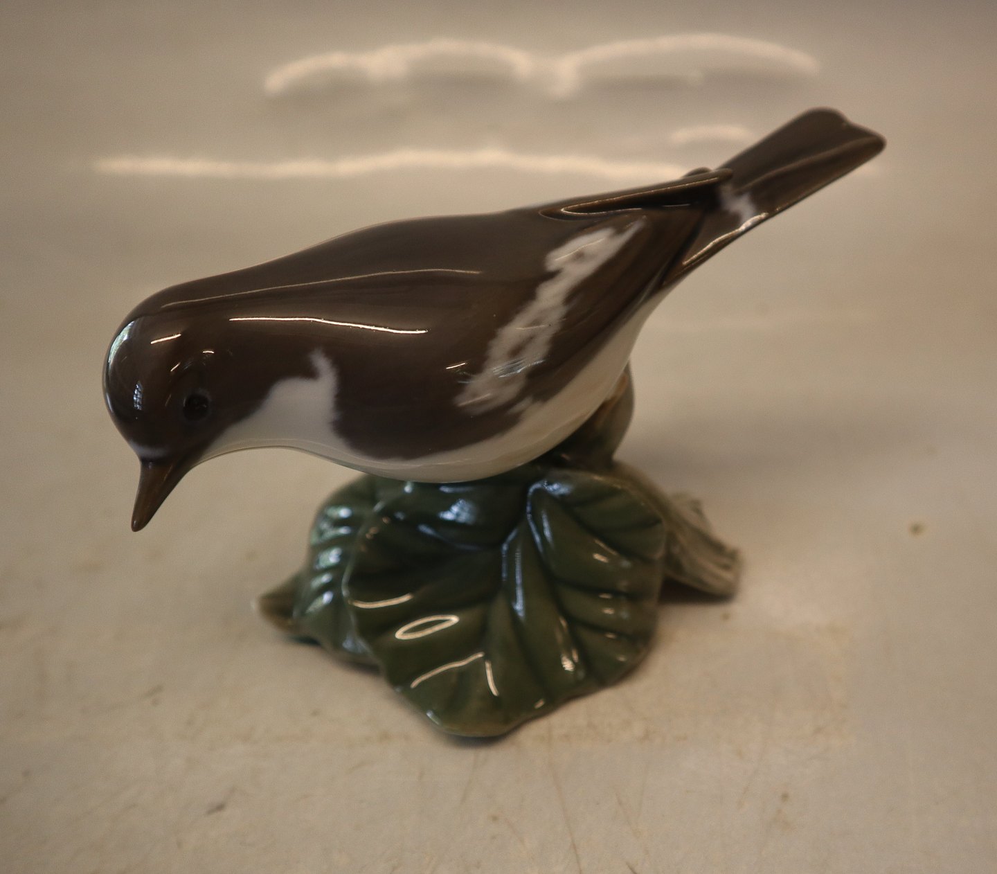 Beskrivelse: 2144 Kgl. Fluesnapper 8 x 13 cm Platten Hallermundt 1920 Fuglefigur i Porcelæn fra Royal Copenhagen I hel og fin stand