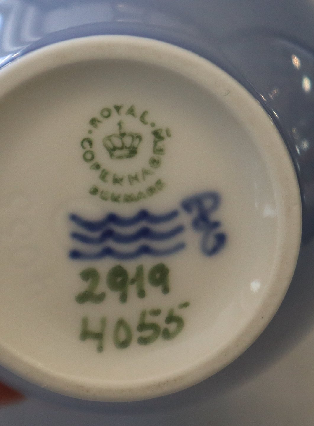 2919-4055 Kgl. Vase Blå Klematis Blomst 19 cm Kongelig Dansk Porcelæn