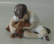 B&G figur 1951 Dreng med grævlingehund 13 cm Hvid version