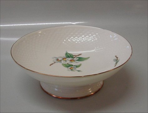Description: Bing and Grondahl Heimdahl 223 Bowl on foot, (medium) 7 x 20 cm- Cream porcelain with gold rim decorated with Jasmin - not to be confused with Appleflower Marked with the three Royal Towers of Copenhagen.Bing & Groendahl In mint and nice condition