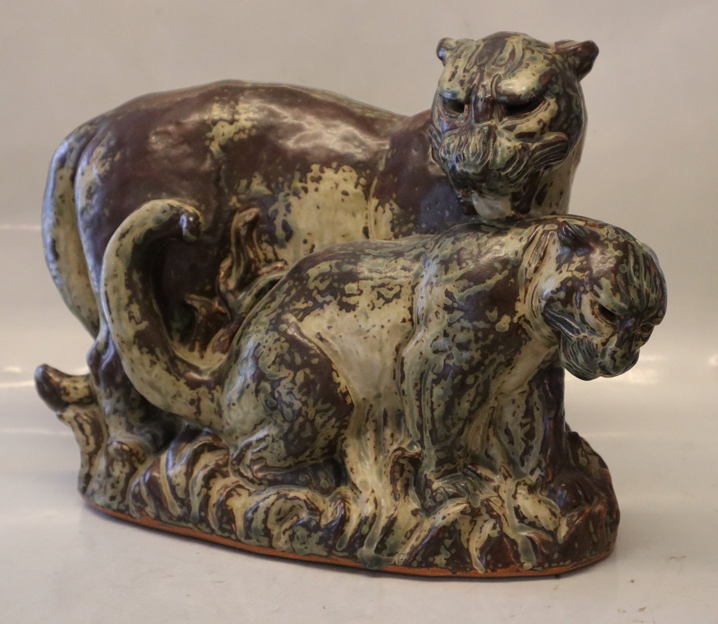 Royal Copenhagen Stoneware 20263 RC 2 Panthers 28 x 40 cm, Knud Kyhn, June 1931. In nice and mint condition