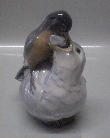 Description: Royal Copenhagen birds 2330 RC Cuckoo being fed 17 cm Knud Kyhn 1923 In mint and nice condition