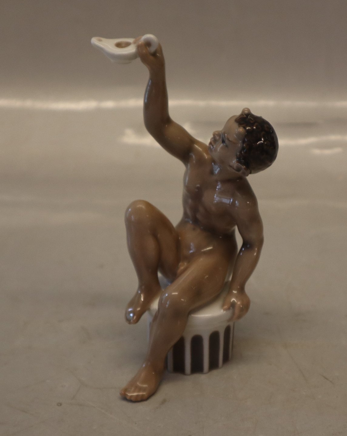 Dahl Jensen 1334 Faun with oil lamp (DJ) 14 cm Marked with the Royal Crown and DJ Copenhagen. In nice and mint condition Dahl Jensen Worked first for Bing & Groendahl B&G from 1897