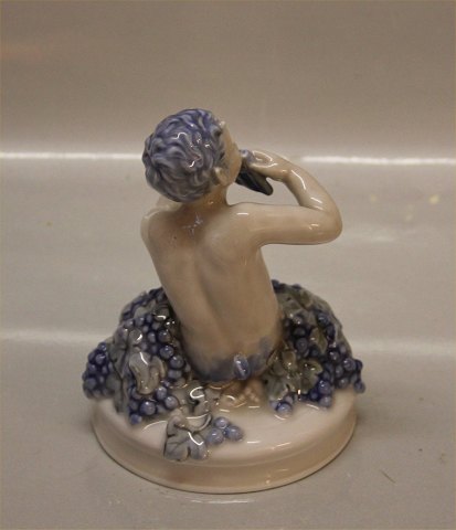 Beskrivelse: Ej på lager Kgl. figur fra Royal Copenhagen faun 2171 Knælende pan med druer Storch 1921 16 x 11 cm Kunstnersigneret af Oluf Jensen OJ I hel og fin stand