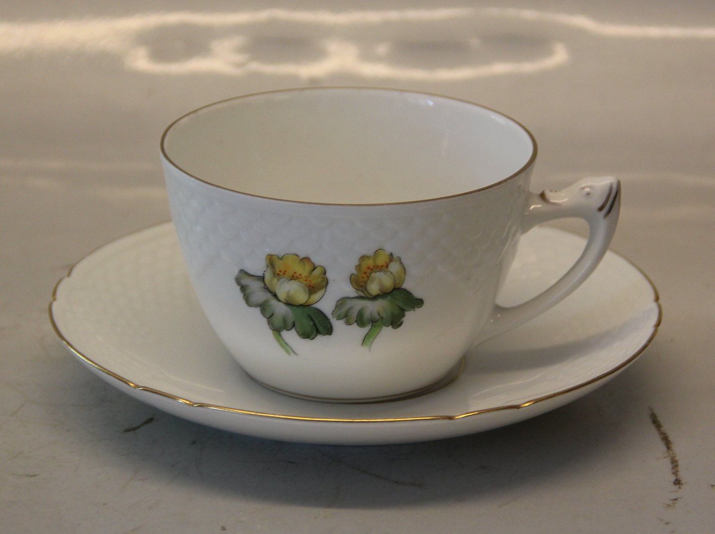 Bing and Grondahl Eranthis 104 Large cup 2.25 dl with saucer 17 cm (476) RC 084 Marked with the three Royal Towers of Copenhagen. Bing & Groendahl In mint and nice condition