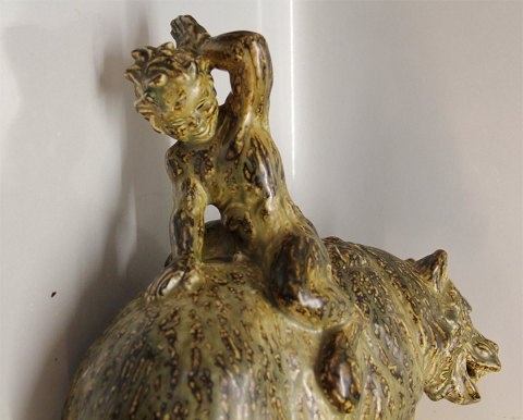 Description: Royal Copenhagen Stoneware 21233 RC Bear with faun April 1954 Knud Kyhn. 42 x 39 cm In nice and mint condition