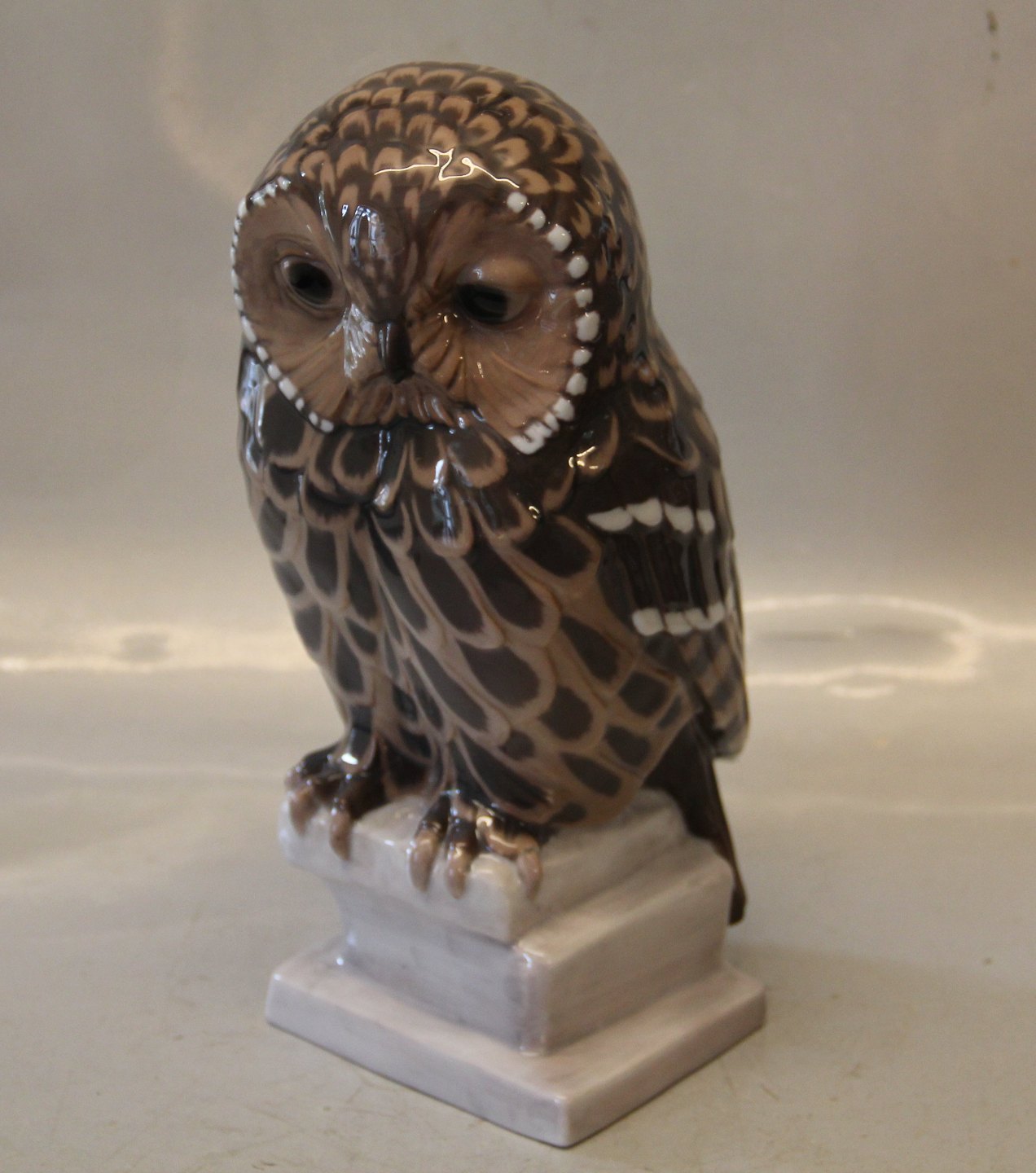 : Bing & Grøndahl fugl B&G 2424 Stor ugle på fod ca 27 cm, K. Otto I fin og hel stand.
