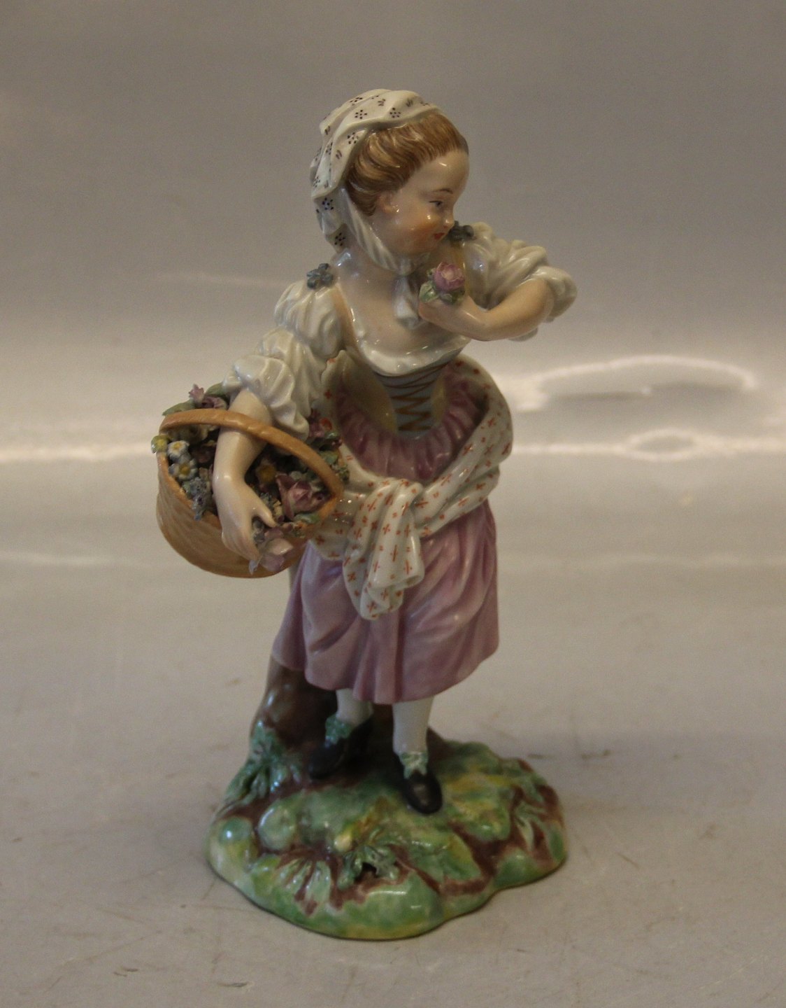 Beskrivelse: Kgl. figur fra Royal Copenhagen 12141 Kvinde med kurv "Forår