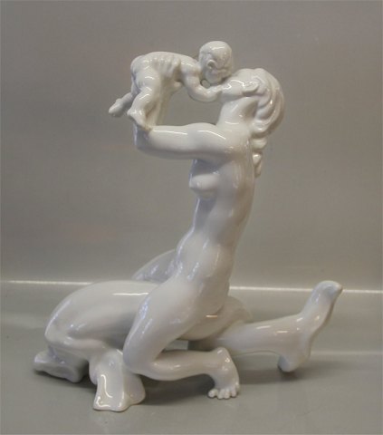 Beskrivelse: Bing & Grøndahl B&G 4057 Kvinde på delfin kysser barn 39 cm Kai Nielsen I fin og hel stand.