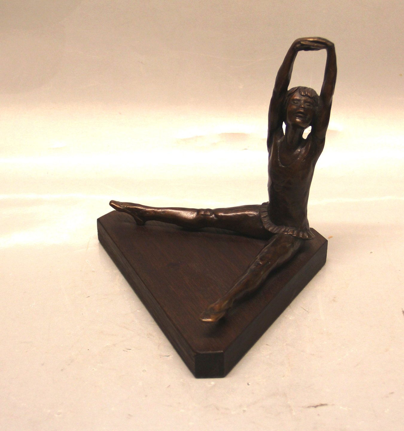 Siddende Bronze balletpige på træfod 18,5 x 22 cm Signeret SGK Sterret-Gittings Kelsey Bronze for Royal Copenhagen Siddende Balletpige