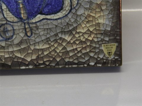 Beskrivelse: Bornholsk Keramik Michael Andersen 6373 Relief med Gl. Kone med spinderok 35 x 30,5 cm MS Marianne Starck