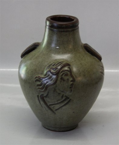 20248 Kgl. Vase m. relief mands- og kvindehoved, Jais Nielsen marts 1931 (Sung) 21 cm