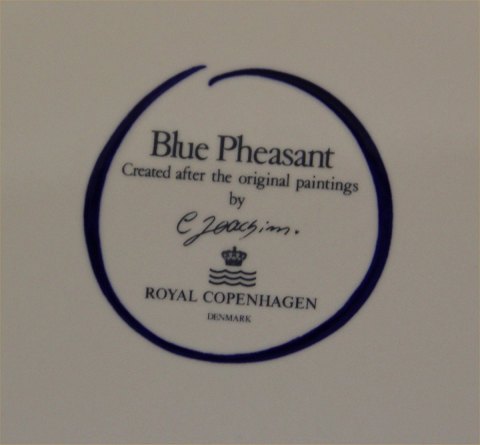 Description: Royal Copenhagen Faience Blue Pheasant Chr. Joachim Aluminia