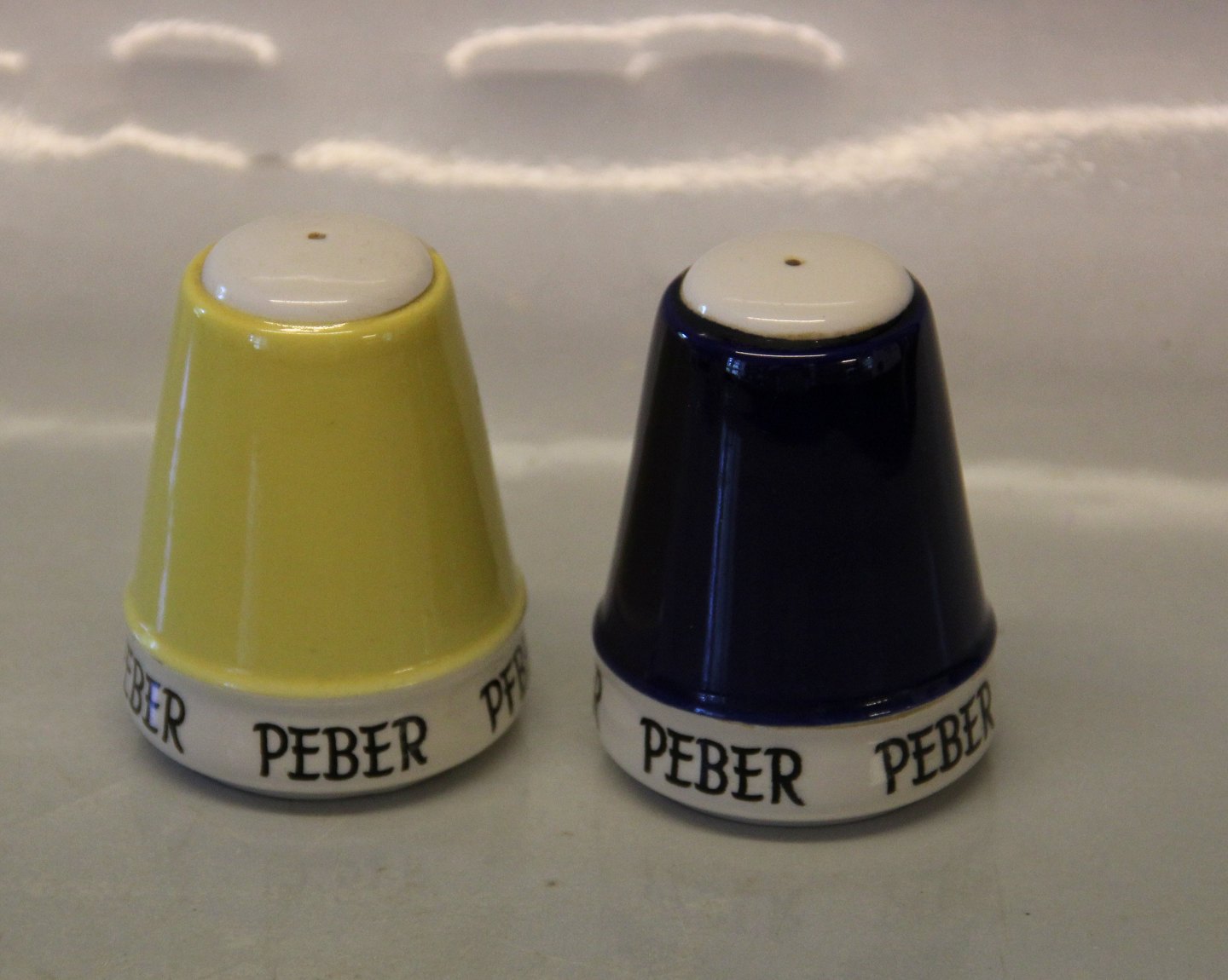 Beskrivelse: Kronjyden Randers Retro plat de ménage Salt, peber & sennep på træbakke fra Nissen I fin stand minimal afskaldning på peber