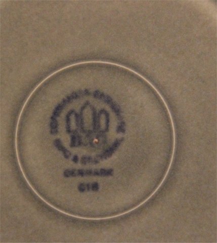 Bing & Grøndahl 618 Tallerken 19 cm (027) B&G Rune Quistgaard Nissen Kronjyden grønt stentøjsstel. I fin og hel stand. Bing & Groendahl. Stemplet Kronjyden eller Bing & Grondahl Copenhagen Stoneware: Designet for Kronjyden, Nissen af Jens Harald Quistgaard