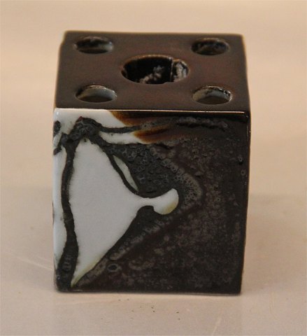Royal Copenhagen Aluminia fajance 645-3500 Terning som lysestage og vase 6.2 x 5.6 cm sort og brun dekoration, Ellen Malmer , Baca