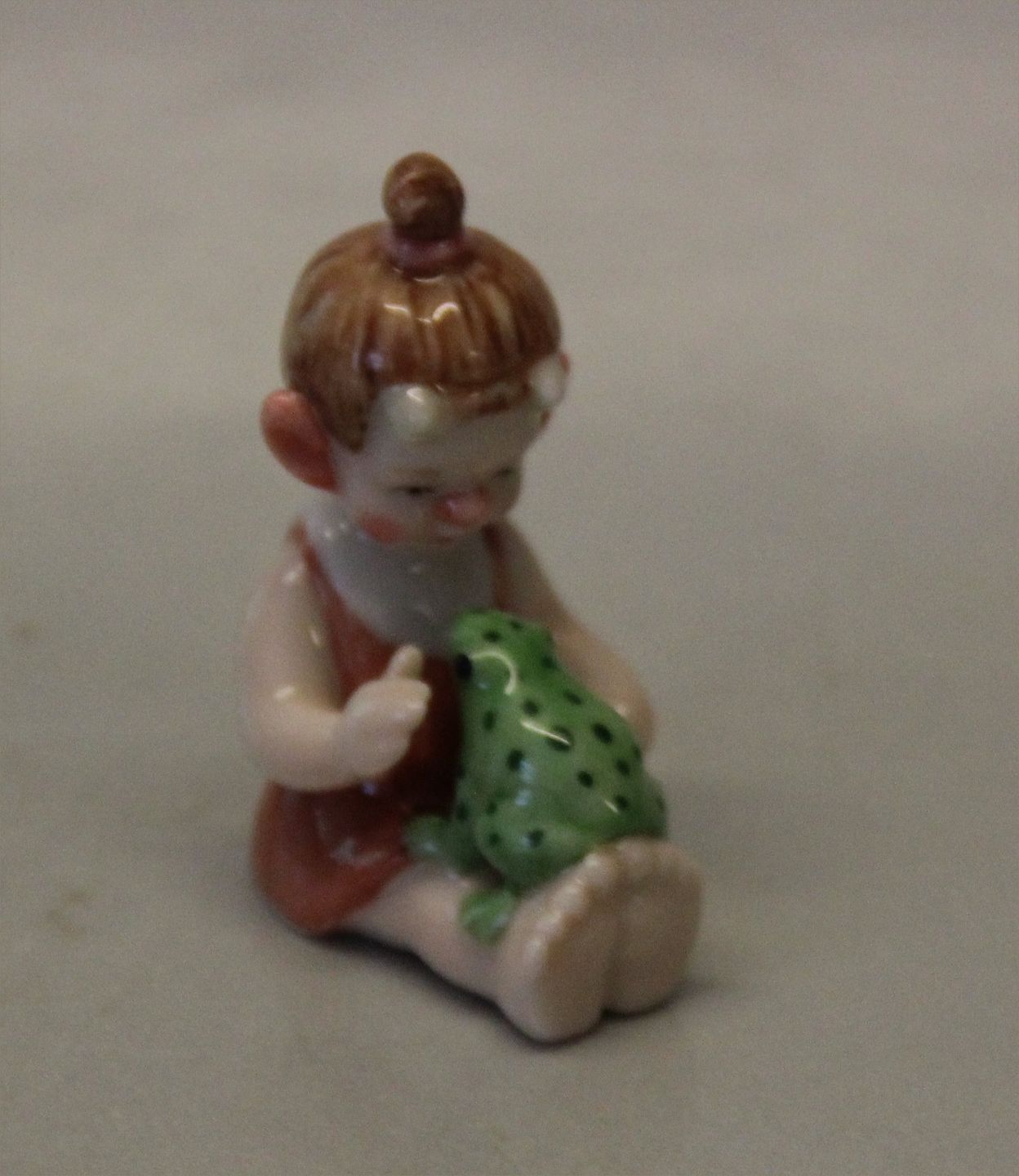 Beskrivelse: 0098 Kgl. Trold, Lillesøster med frø 5.5 cm (1249098) figur fra Royal Copenhagen I hel og fin stand