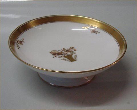 Kgl. 9269-595 Skål på fod 18 cm Royal Copenhagen Guld dekoration på hvidt porcelæn 1927. I hel og fin brugt stand Golden Basket