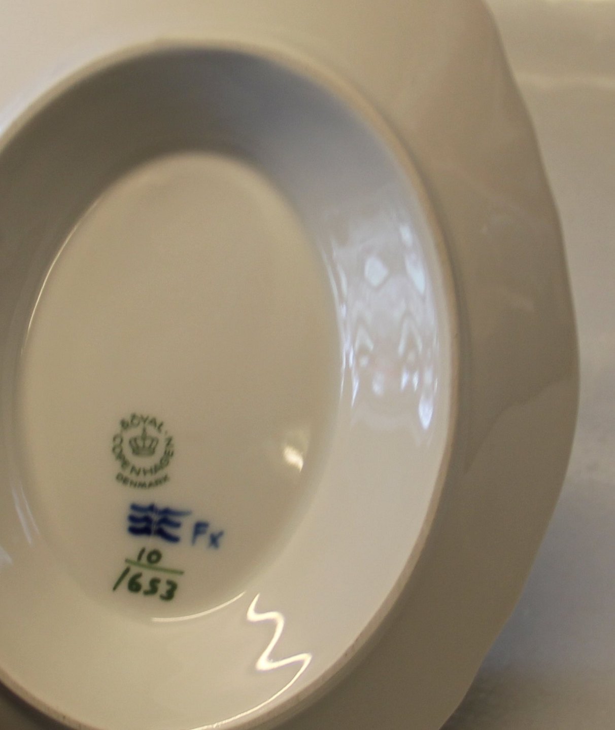 Royal Copenhagen Blå Blomst Svejfet 1653-10 Sauceterrin, oval på fast fad m/figur 20 x 24 cm (169-170)