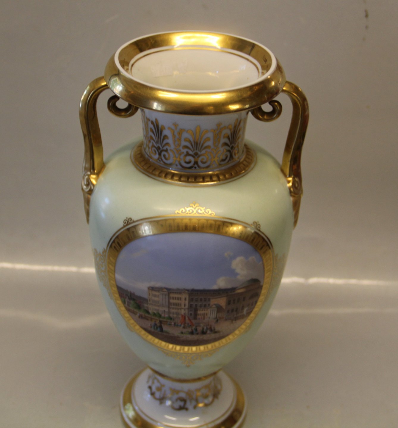 Christiansborg Slotskirke Guldaldermaleri Kongelig Dansk ca 1850 Prydvase med guld 26 cm