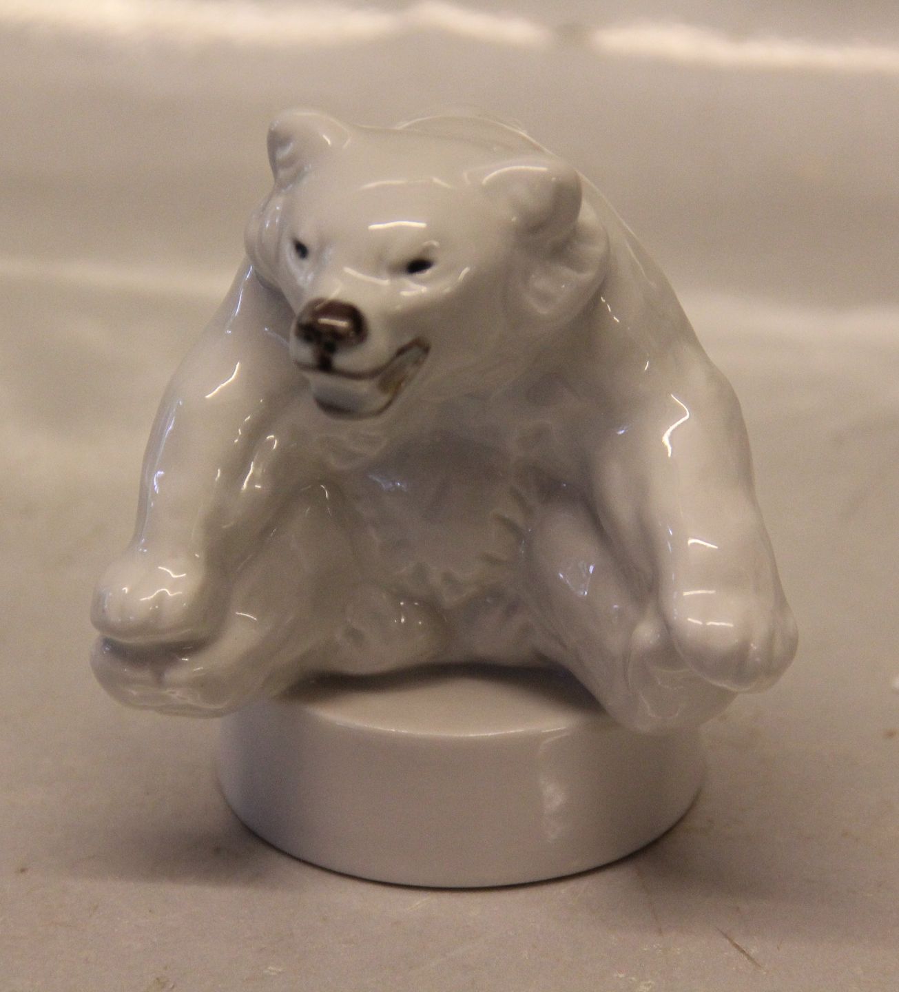 246 Kgl. (1003246) Hvid Isbjørneunge siddende pote mod pote på rund sokkel ca 10 x 9 cm Knud Kyhn/ Jeanne Grut 22745 (0346) Kongelig Dansk Stentøj