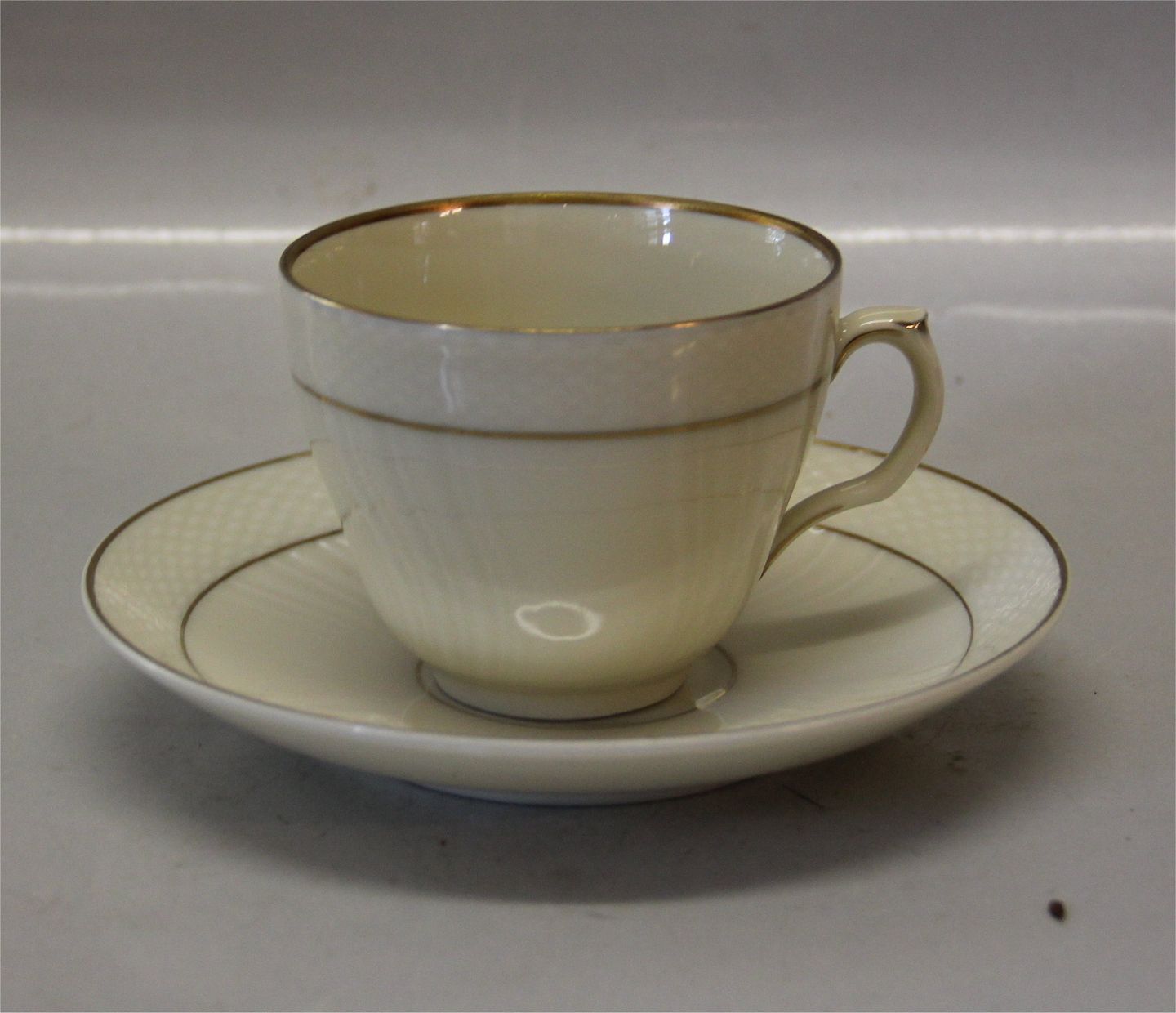 Svejfet #878 cremefarvet stel med guldkant Kgl. 1870-878 Kaffekop 18 cl. og underkop 14,4 cm (071)