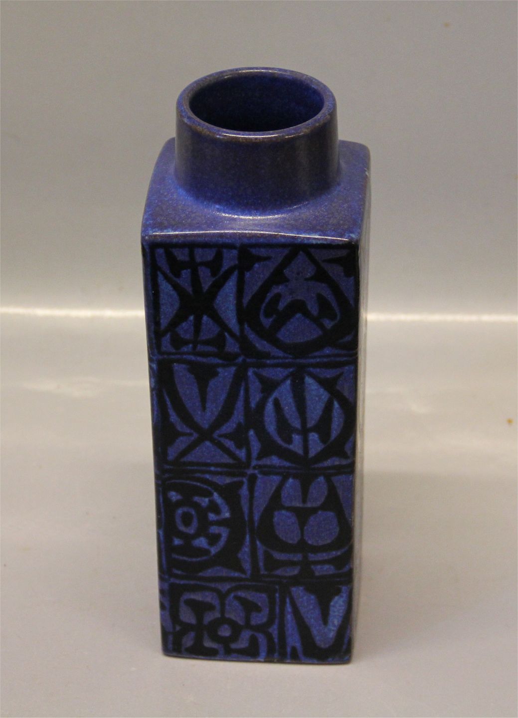 704-3259 Mørkeblå, firkantet vase 22,5 x 7,7 cm Baca, Nils Thorsson Royal Copenhagen Aluminia fajance Blå Baca Nils Thorsson