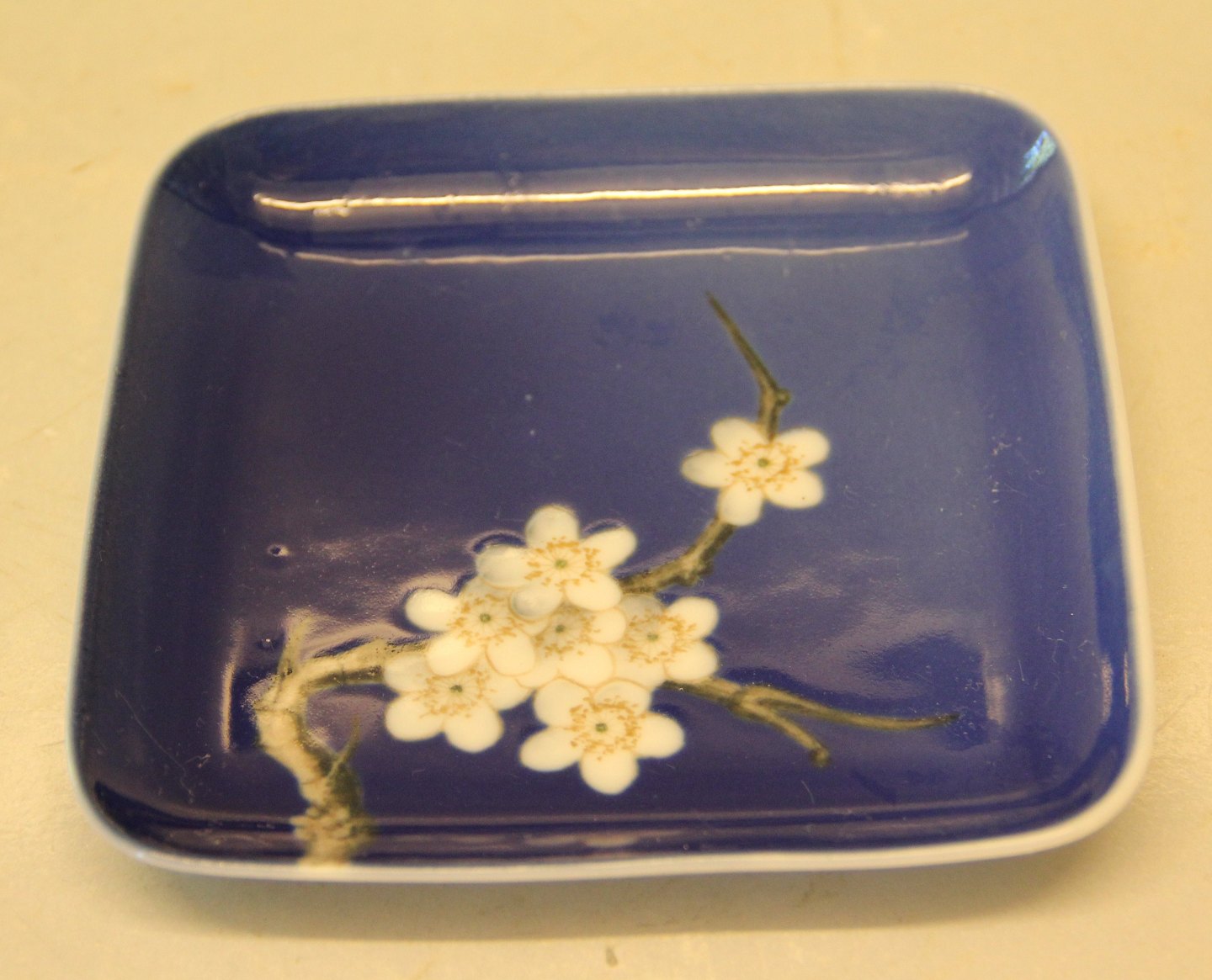 Bing & Grøndahl B&G 8580-455 Dybt blå fad med frugtblomster 12 cm