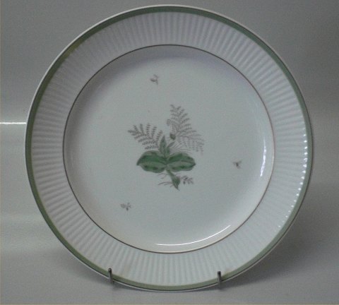 1513-14061 Luncheon Plate 22.5 cm Green Melody #1513 Royal Copenhagen (RC) White glazed ribbed porcelain with green decoration and gold Groen Melodi