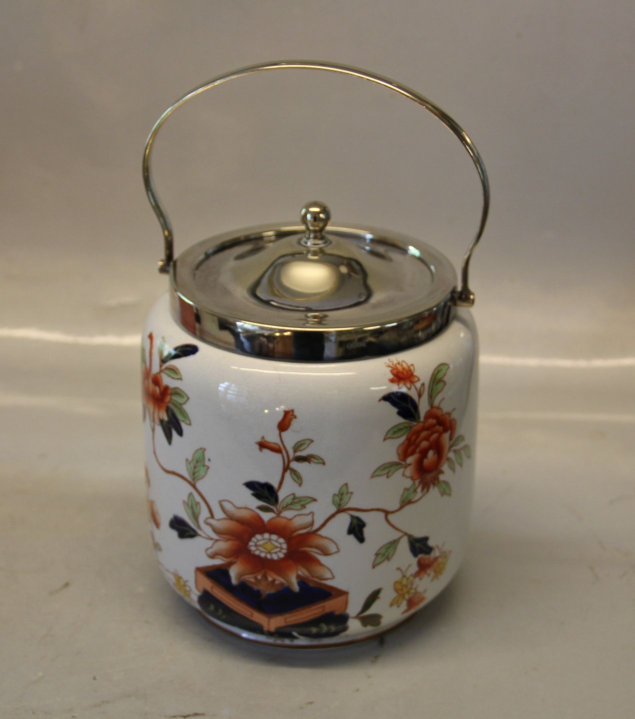 Bisquit bucket with silverplated lid Japan England Faience EPNS 17 cm
