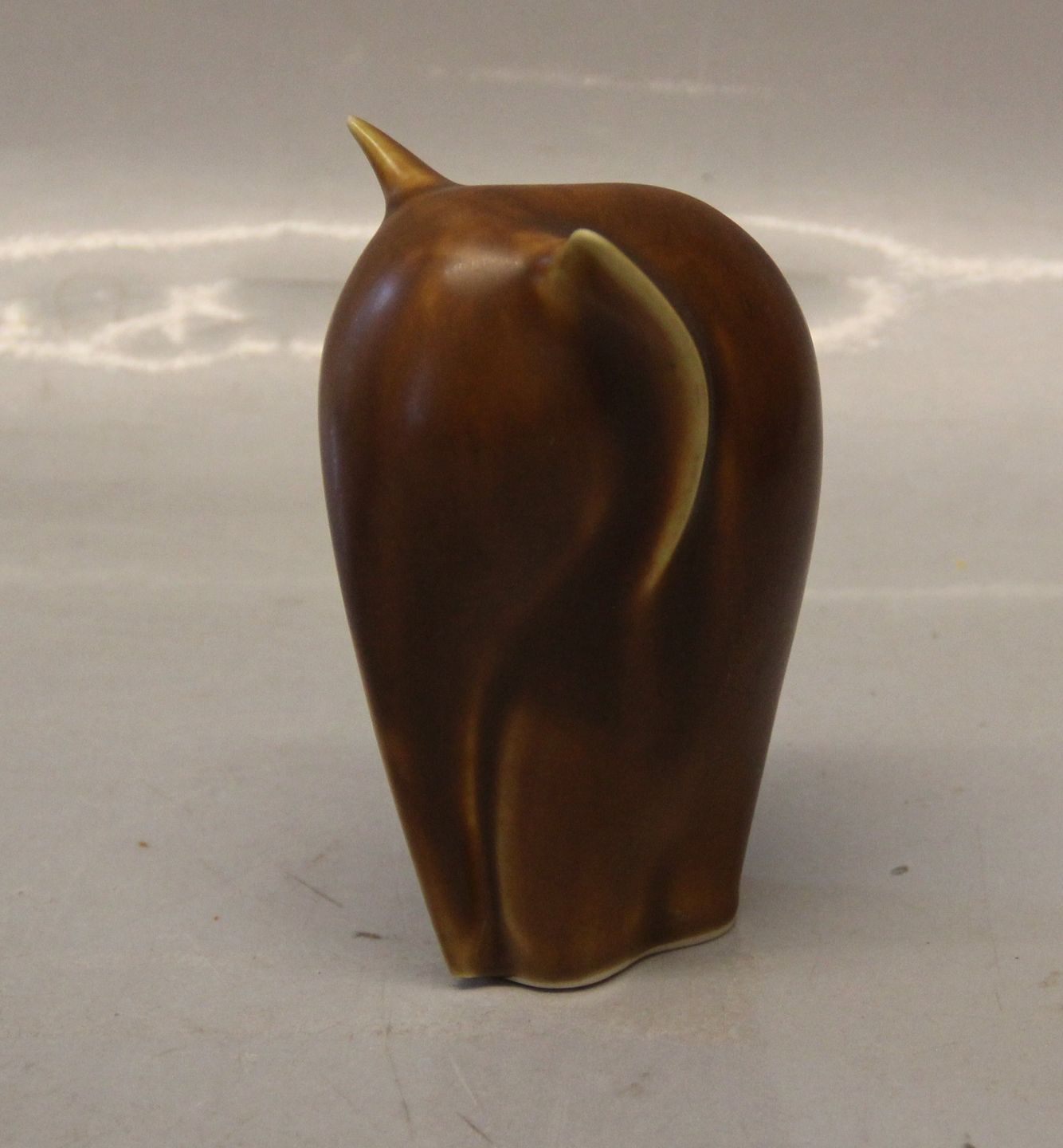 Beskrivelse: Palshus Elefant Brun Harepelsglasur ca 12.5 cm Keld Jordan Signeret K Denmark Kjeld Jordan for Palshus