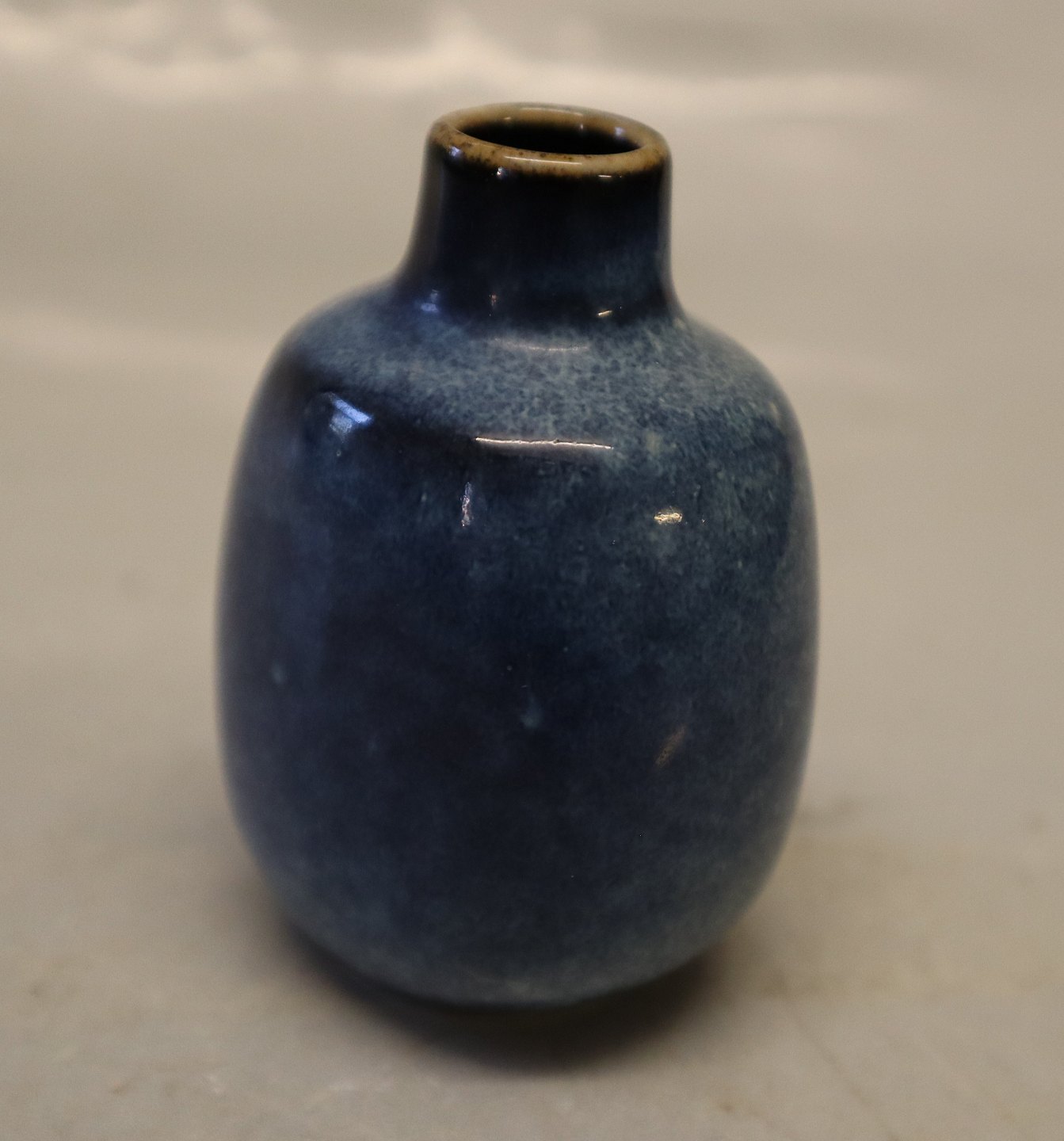 21403 Kgl Miniature vase 7 cm Nils Thorsson Sept 1956 Blåmusling glasur Kongelig Dansk Stentøj