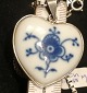 Silver mounted Blue fluted heart with silver chain Blue Fluted Danish Porcelain