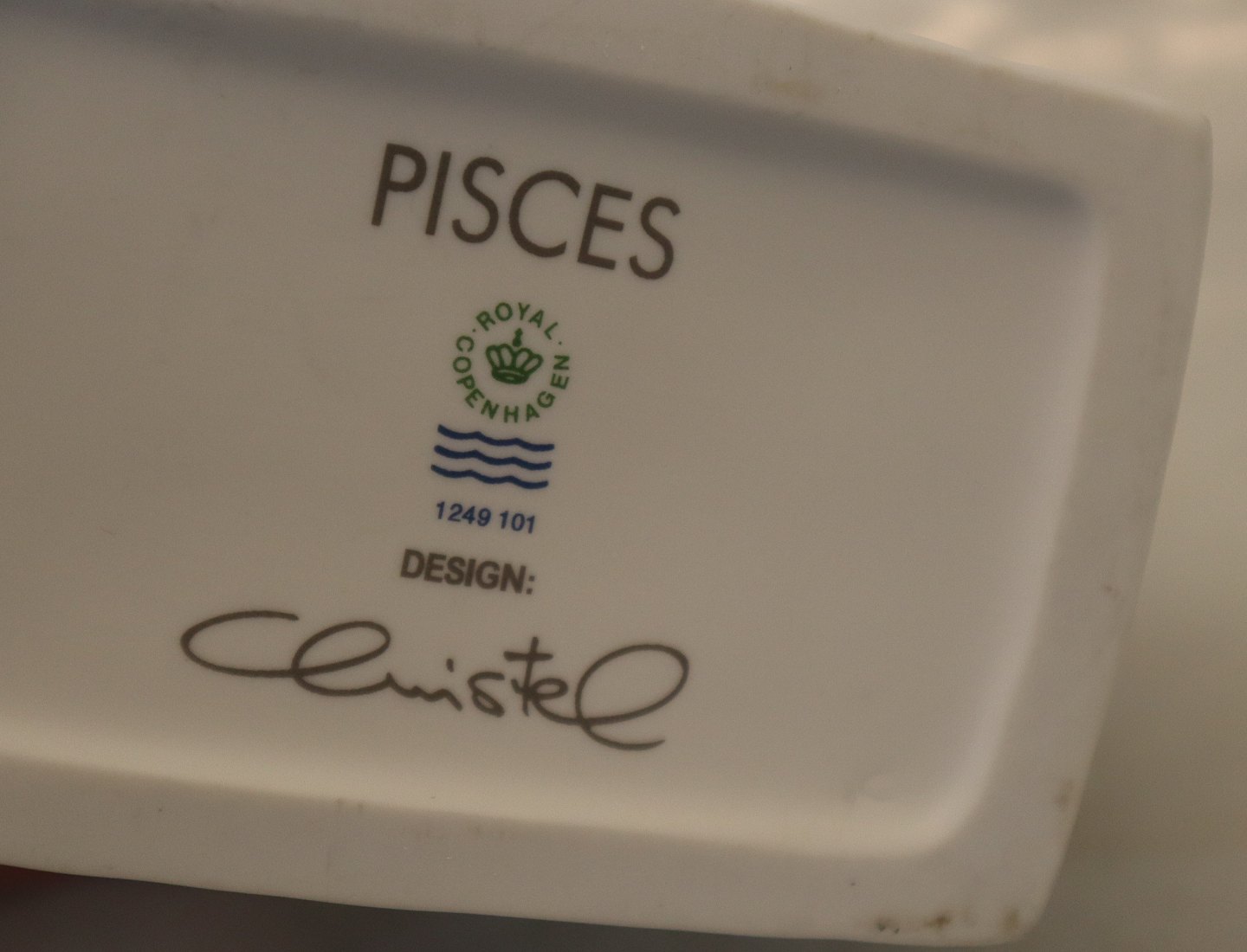Beskrivelse: 101 Kgl. Pisces Fisken (20. februar til 20. marts ) Christel Zodiac Stjernetegnsfigur Bisquit (1249101-41200) fra Royal Copenhagen I hel og fin stand