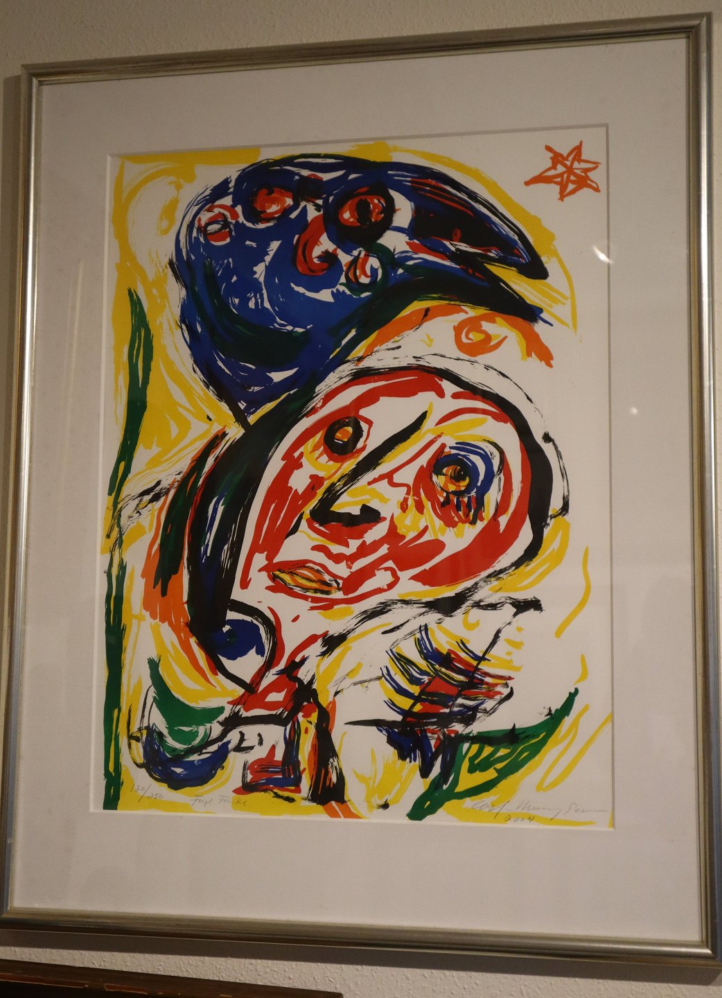 "Phoenix" Color lithography limited #120 of #250 Signed Carl-Henning Pedersen 2004 Ca 87 x 67 cm included the silverframe