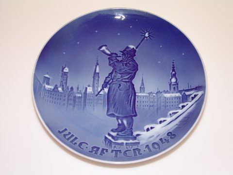 : Bing & Grøndahl Juleplatter (BG) fra 1948 "Vægteren på rådhuset". Design Margrethe Hyldahl. I fin og hel stand