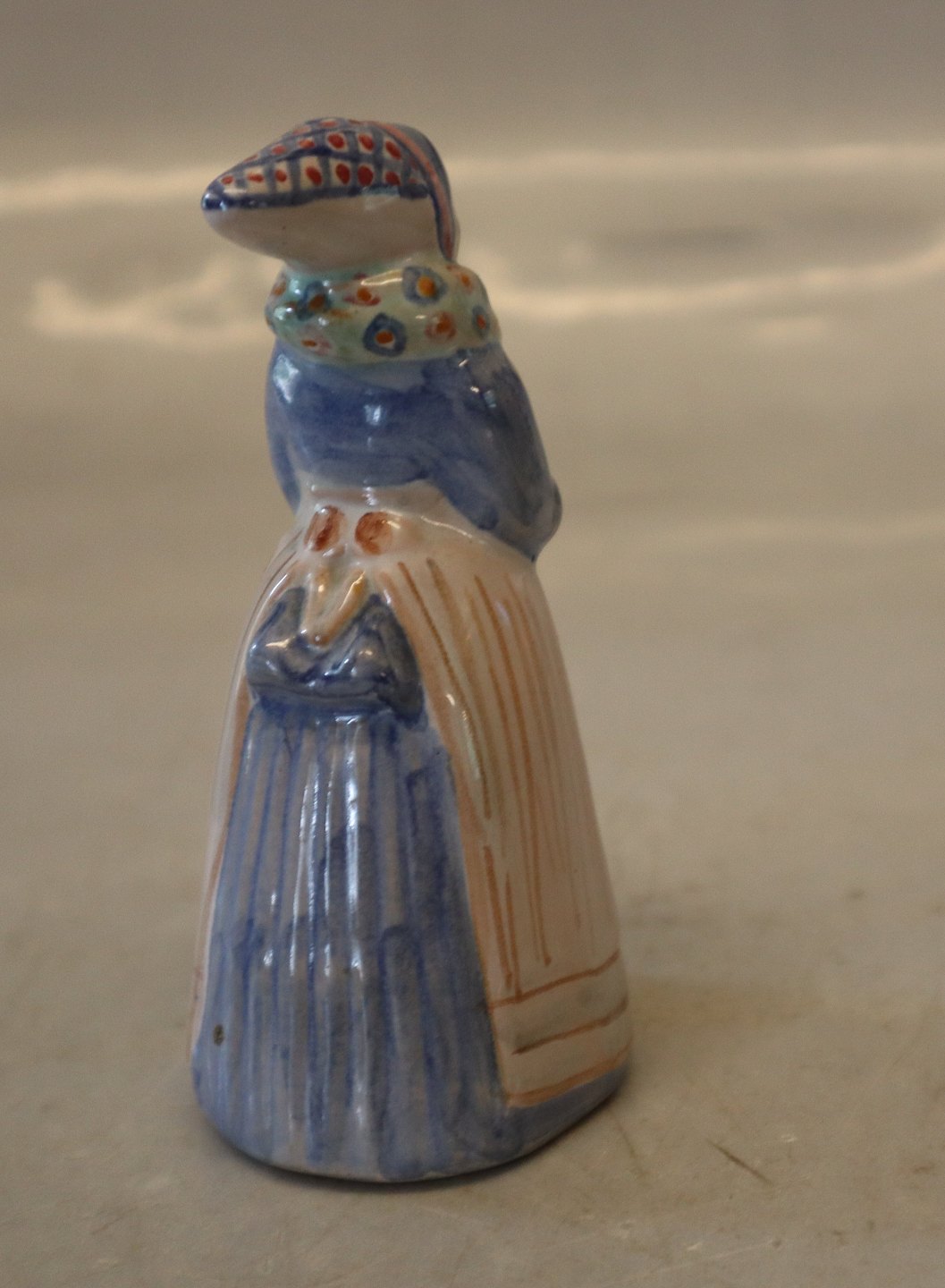 : L. Hjorth miniature woman with purse 9 cm Bornholm Denmark Danish Art Pottery in nice and mint condition