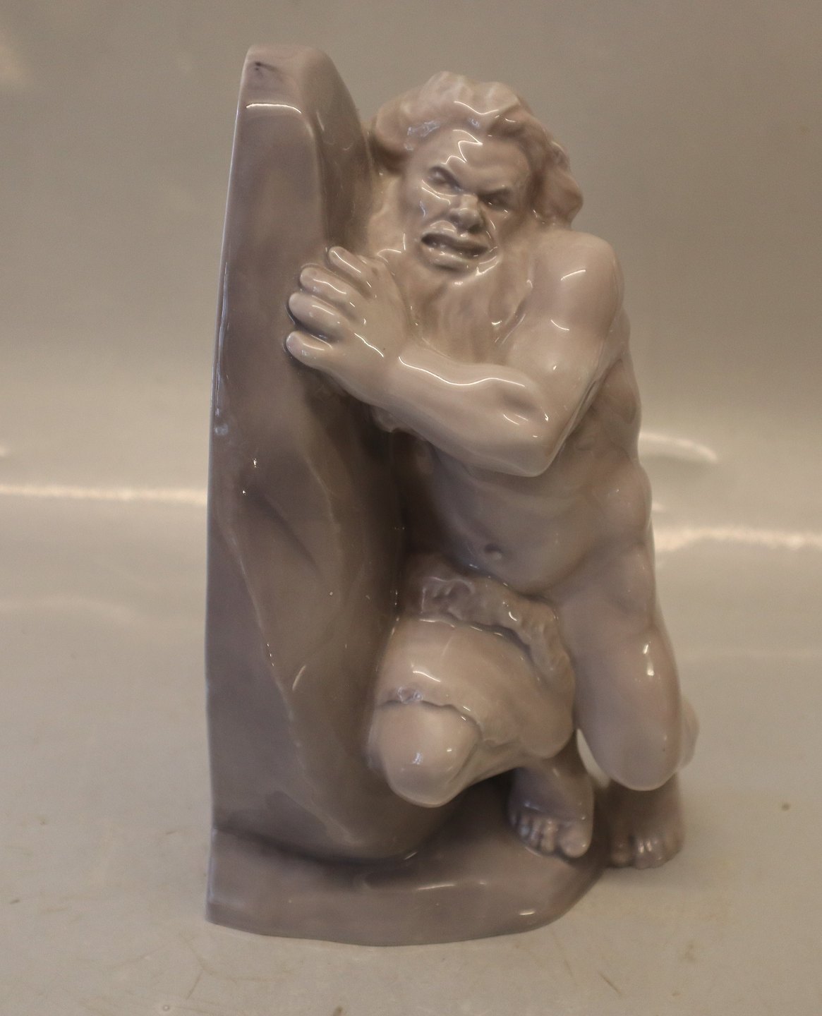 Beskrivelse: Bing & Grøndahl figur B&G 2100 Bogstøtte Sisifos 22 cm . I fin og hel stand Carl Johan Bonnesen Stemplet CJB