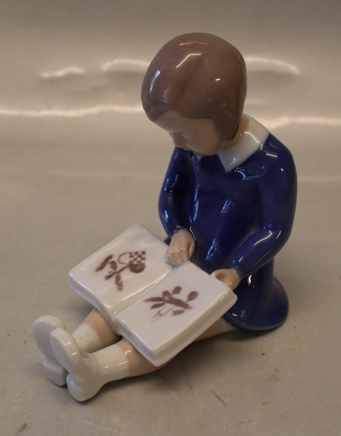Bing & Grøndahl B&G 2247 Pige med julebog 12 x 12 cm Kgl. # 447 I fin og hel stand.