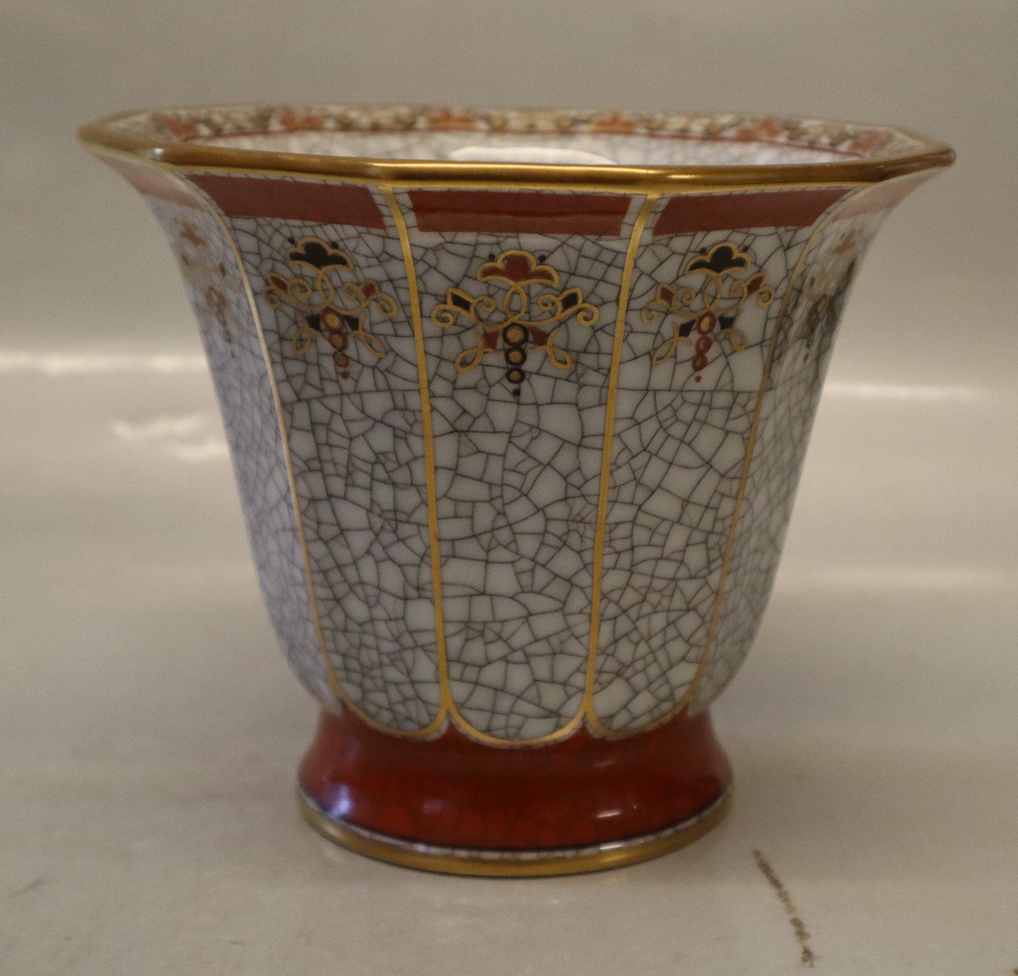 44-705 DJ Trumpet vase 14 x 16.5 cm rød på gråt med guld