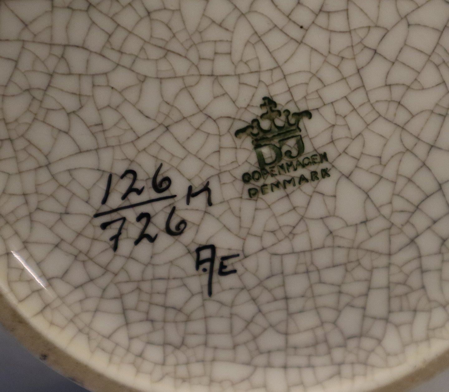 Description: 124-724 DJ Tray 4.5 x 13.5 cm blue, grey with gold Dahl Jensen Marked with the Royal Crown and DJ Copenhagen. In nice and mint condition Dahl Jensen Worked first for Bing & Groendahl B&G from 1897 Craquelé, Craquele, Krakelé eller Krakkele (Crackelure)