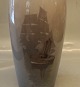 Royal Copenhagen 78 RC Vase 40.5 cm Marine and sailship motives Signed by Harry Kluge