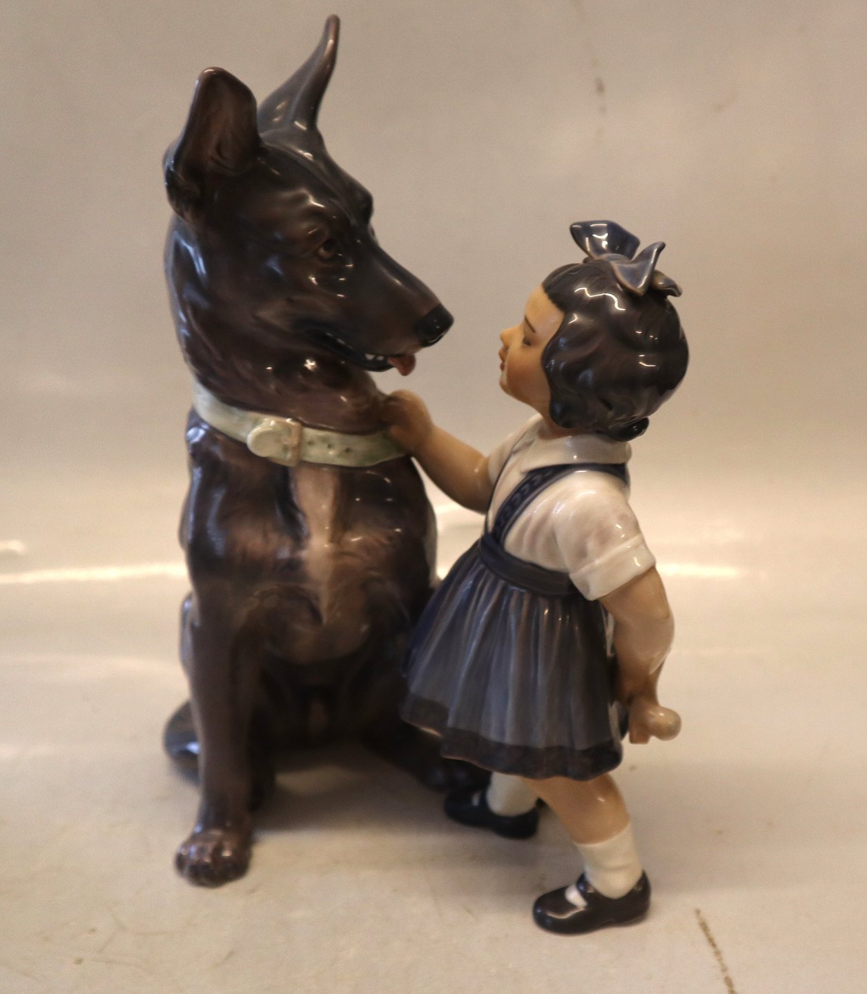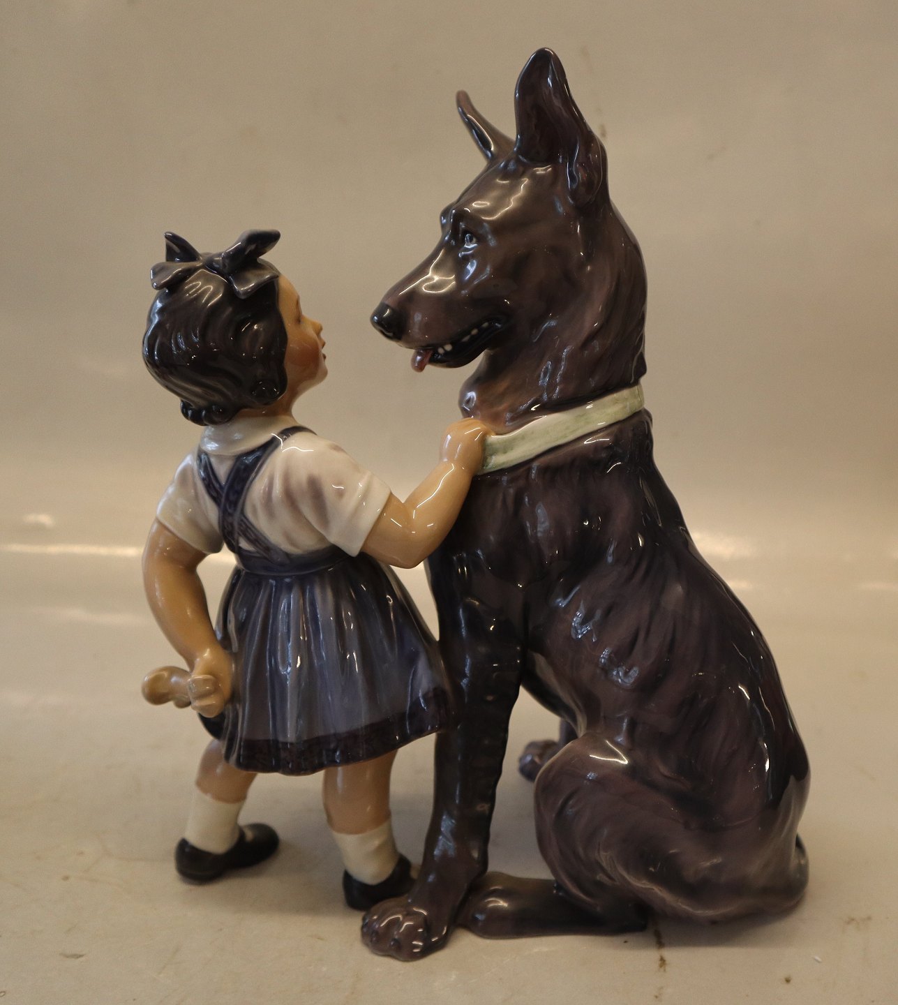 Dahl Jensen figur 1213 Pige med schæferhund 25 cm