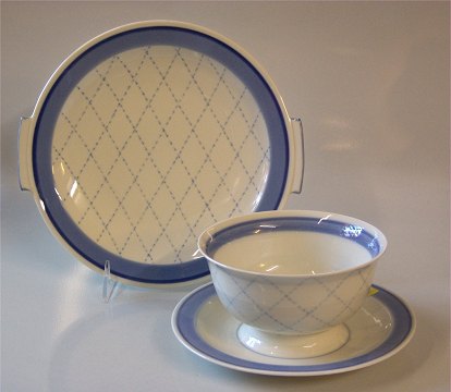 Description: Bing & Grondahl dinnerware Prik Cream base, punctured lines, wide blue border, form 635 Groendahl