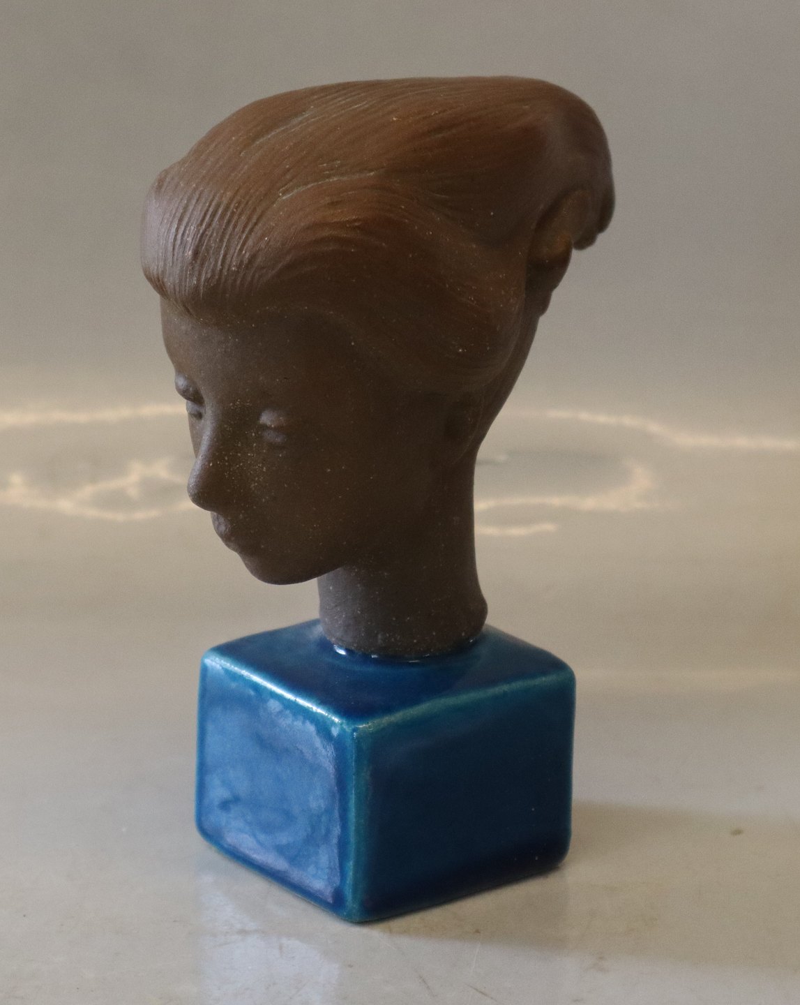 Royal Copenhagen Art Pottery 21817 RC Head "Cleopatra" 16 cm (After 21390), JH, February 1961 6.25" Turquoise