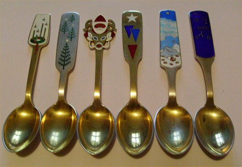 Beskrivelse: Anton Michelsen Juleskeer og Gafler fra 1921 til 1964. Emalje på alle skeer og gafler er perfekt.